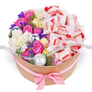 Хрустальный лед-коробка с кустовыми розами и раффаэлло