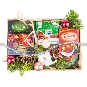 Праздничные огоньки - новогодняя коробка из розы,елочных украшений и безеот 5 232 руб. 5 394 руб.Купить