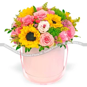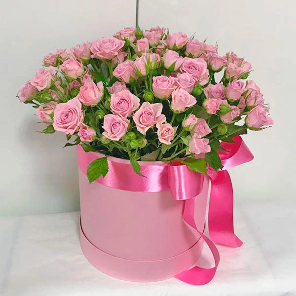 Нежность дня - шляпная коробка с розовыми кустовыми розами